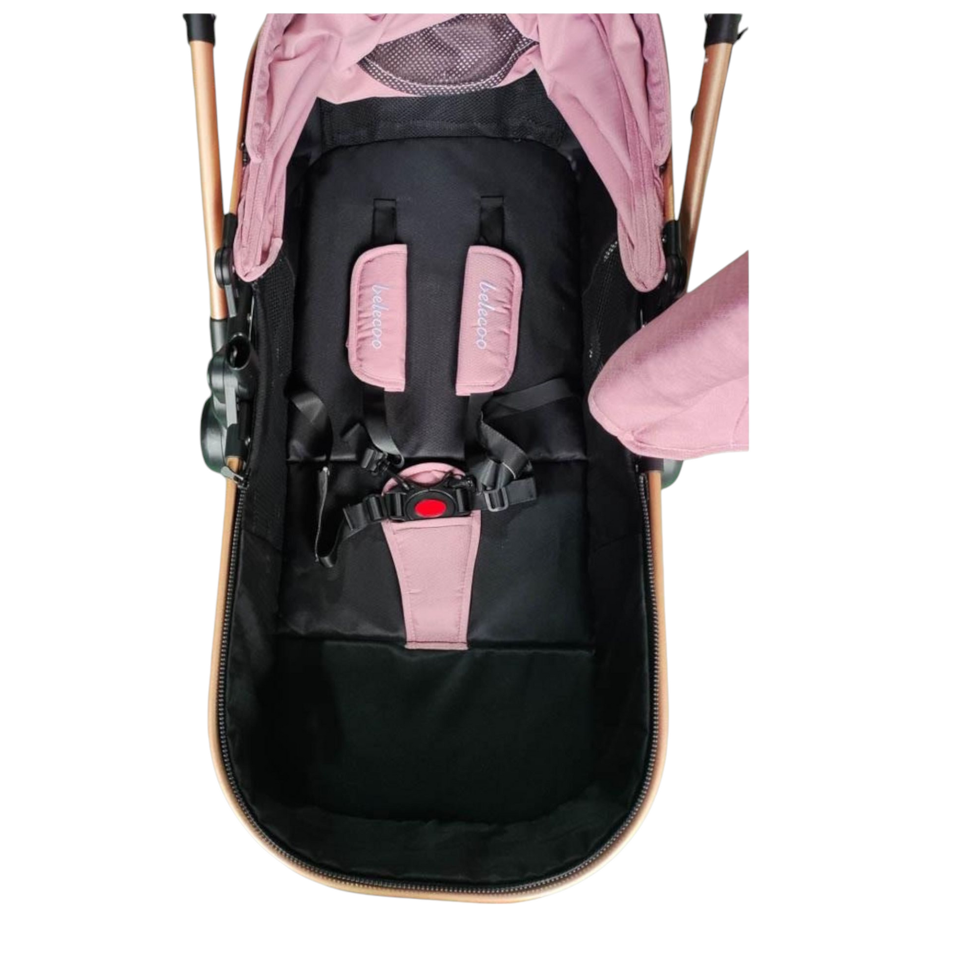 Carucior 2 in 1 Belecoo XID, cu inchidere compacta, 0-36 luni, reversibil Roz/ Negru