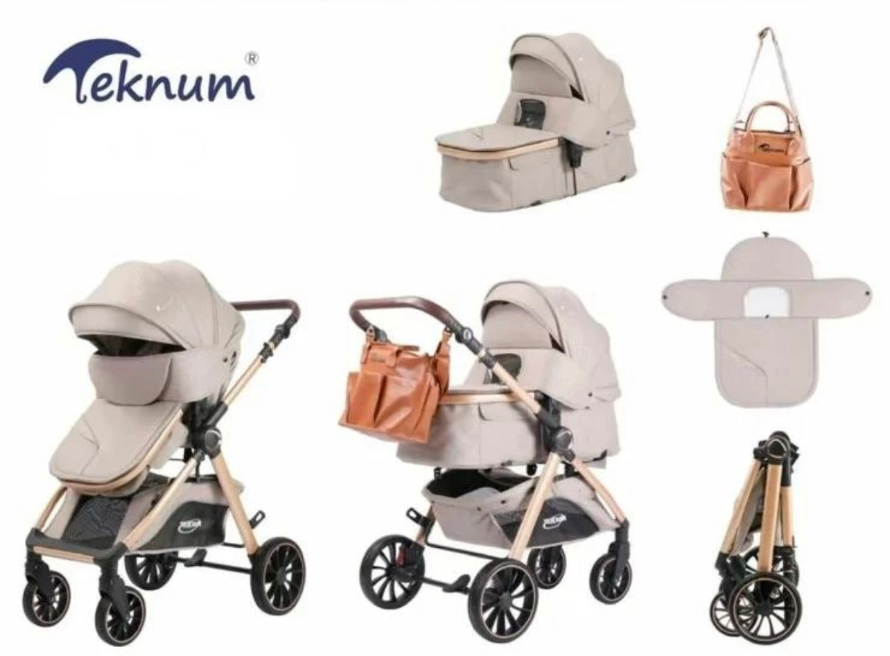 Carucior Teknum Baby, model 3 in 1, 0-36 luni, reversibil, cu pliere compacta, culoare GRI