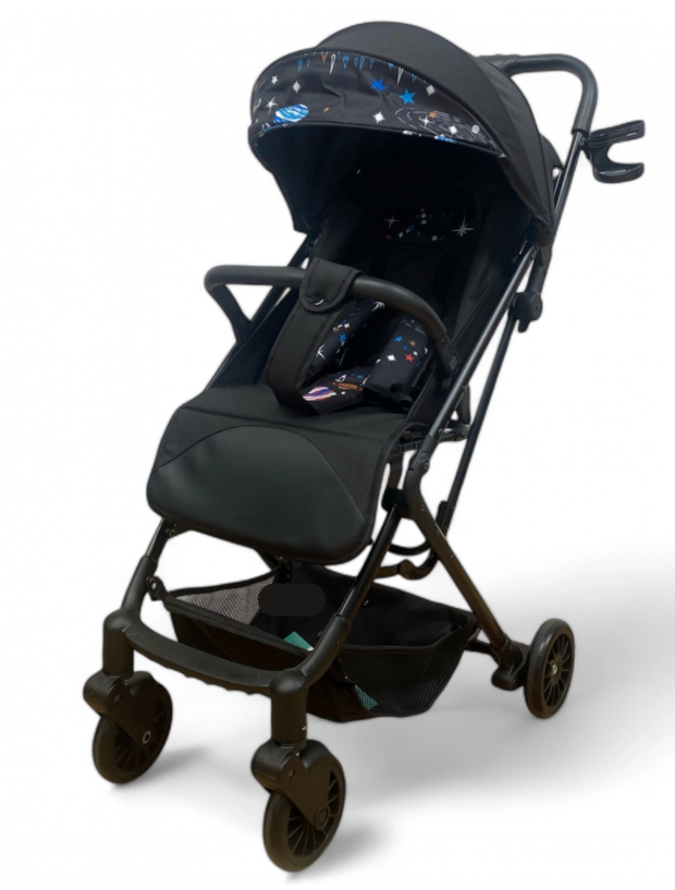 Carucior sport, ultrausor si ultrapliabil, cu pozitie de somn, tip troller, cu accesorii din piele, sarcina maxima 22 Kg, negru