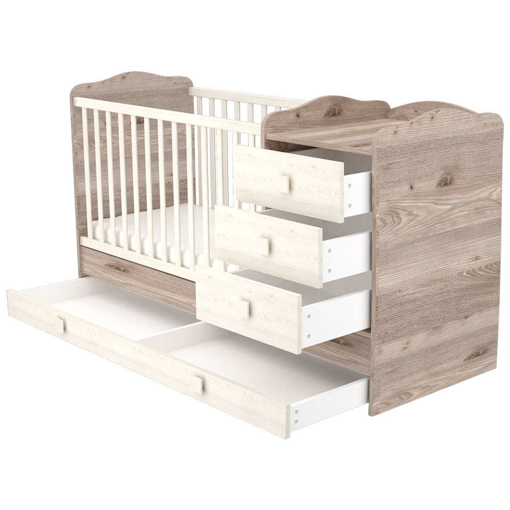 Detalii Patut copii transformabil din lemn cu 4 sertare Hubners Sofia Kombi 120x60 cm