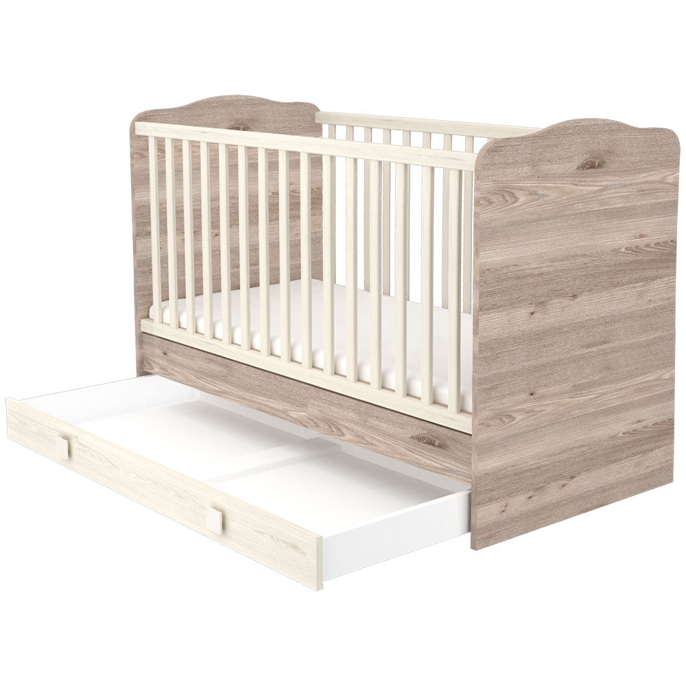 Patut copii transformabil din lemn cu sertar Hubners Sofia 140x70 cm crem nisip
