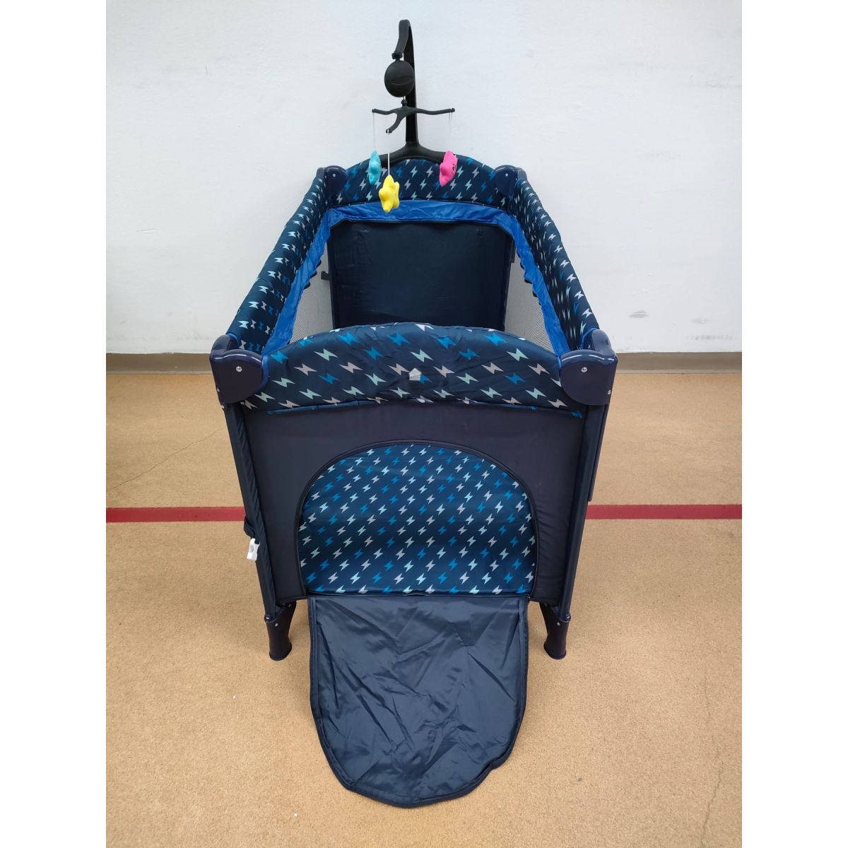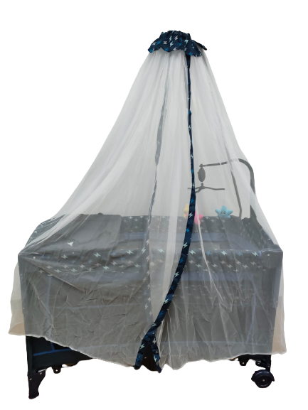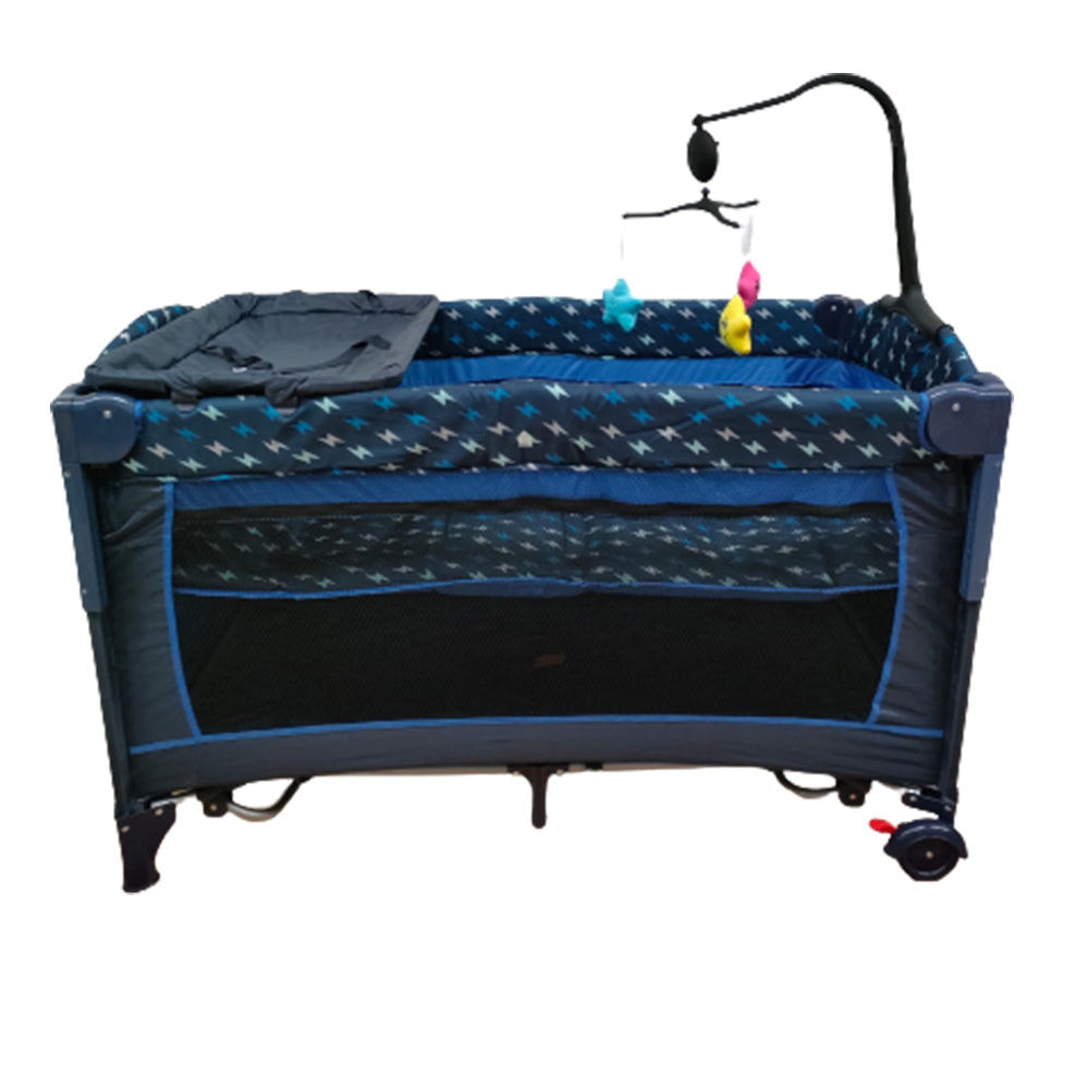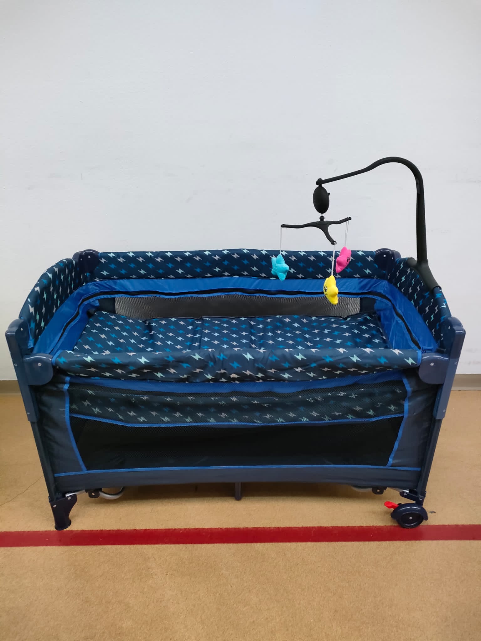 Patut pentru bebelusi cu baldachin , laterala pliabila cu masa de infasat si carusel ,GGBT1 ALBASTRU