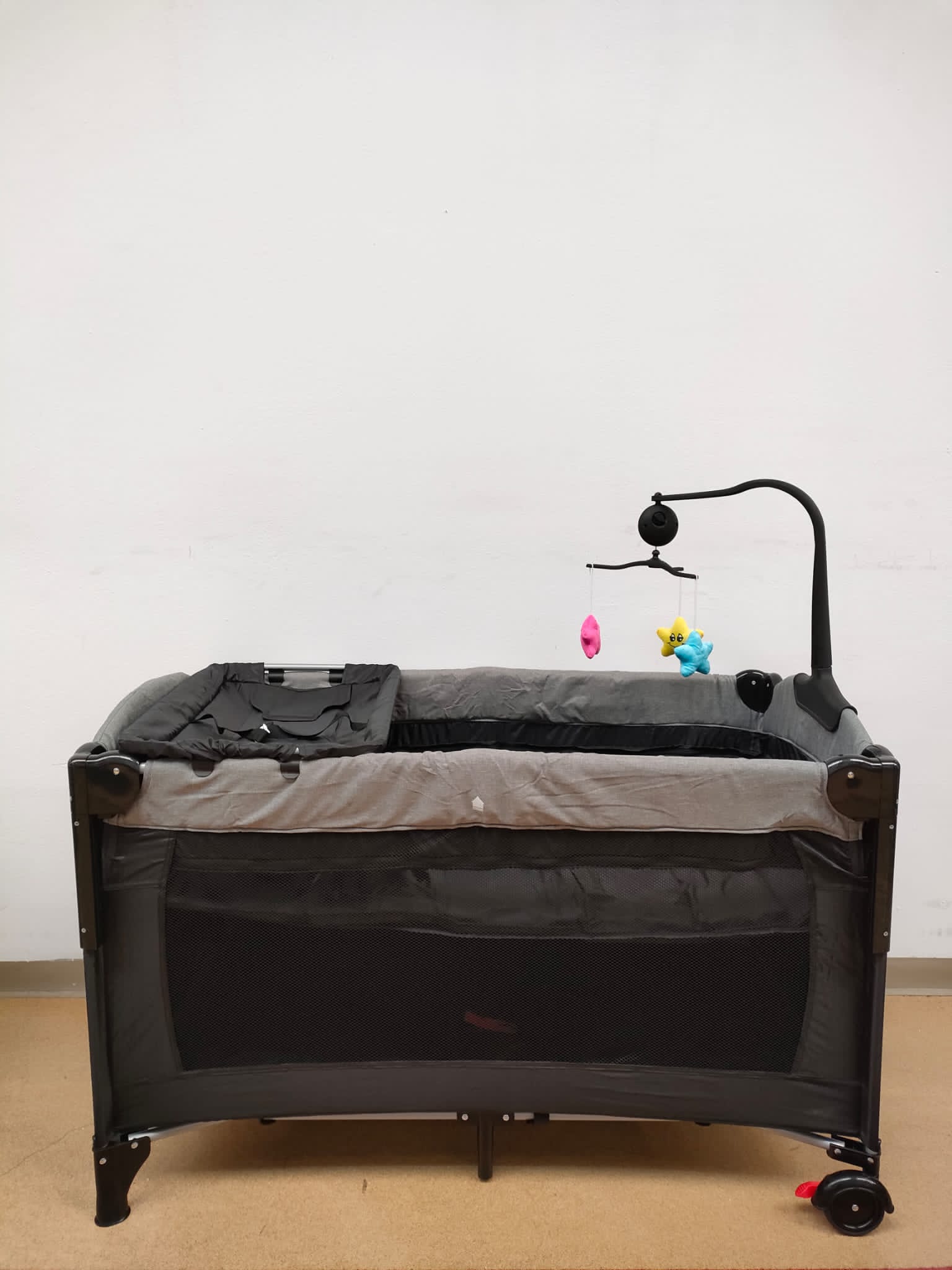 - Rotile patutului sunt prevazute cu frana ,pentru o mai mare siguranta;