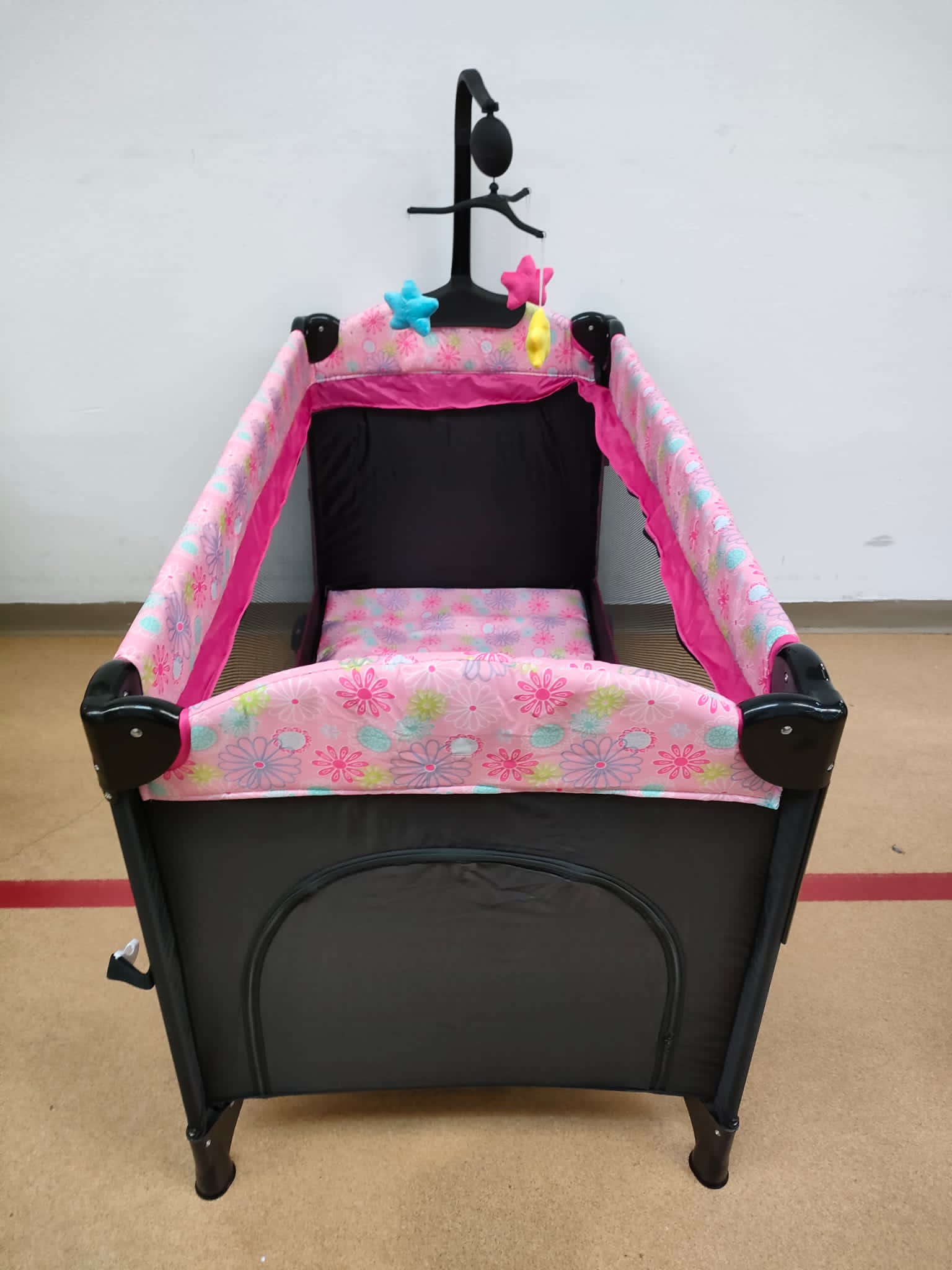 - Partea laterala este prevazut cu o usita cu fermoar cu siguranta pentru a impiedica copilul sa iasa singur din patut atunci cand nu este supravegheat;