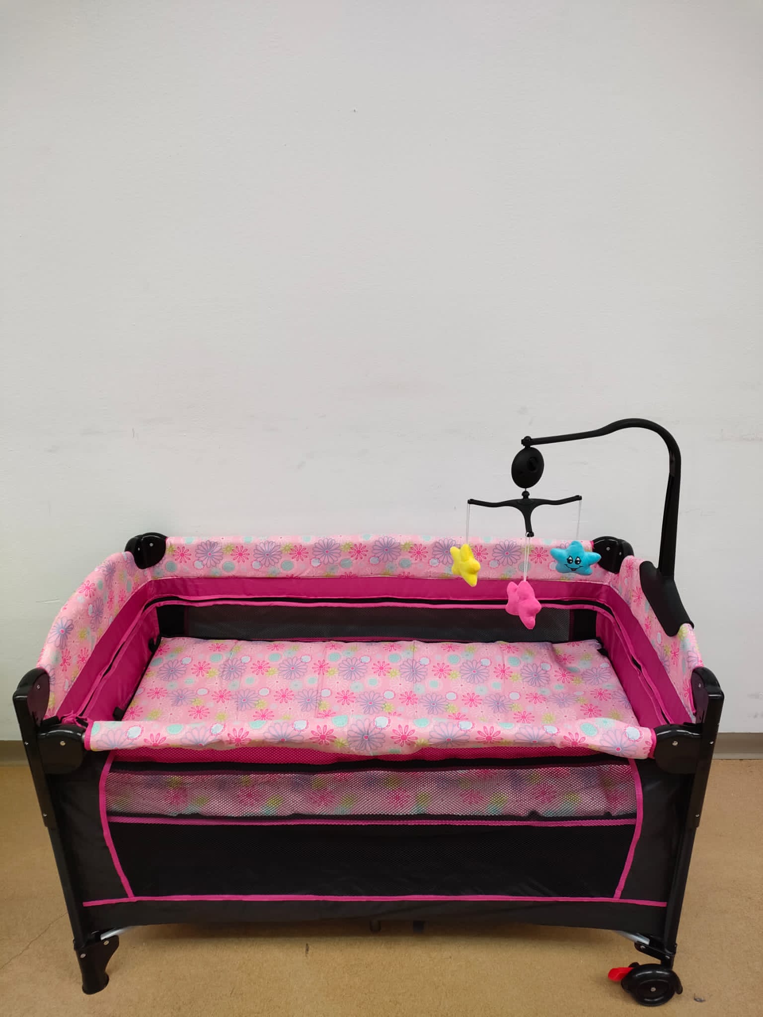 - Rotile patutului sunt prevazute cu frana ,pentru o mai mare siguranta;