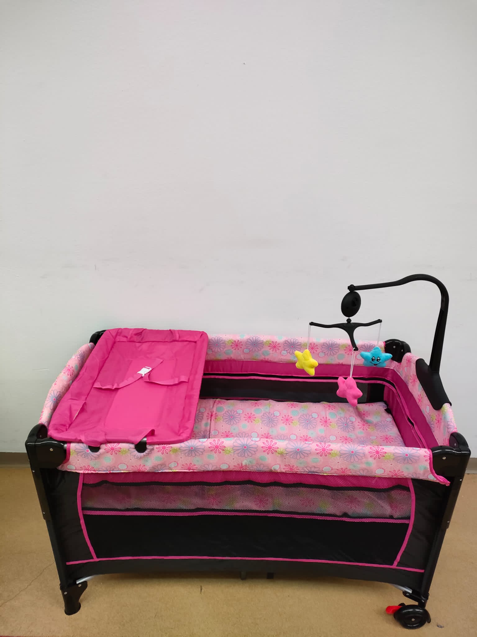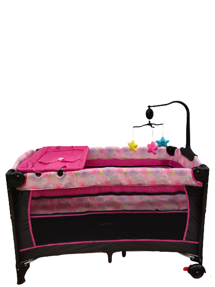 Patut pentru bebelusi, laterala pliabila cu masa de infasat si carusel , roz GGBAB1R