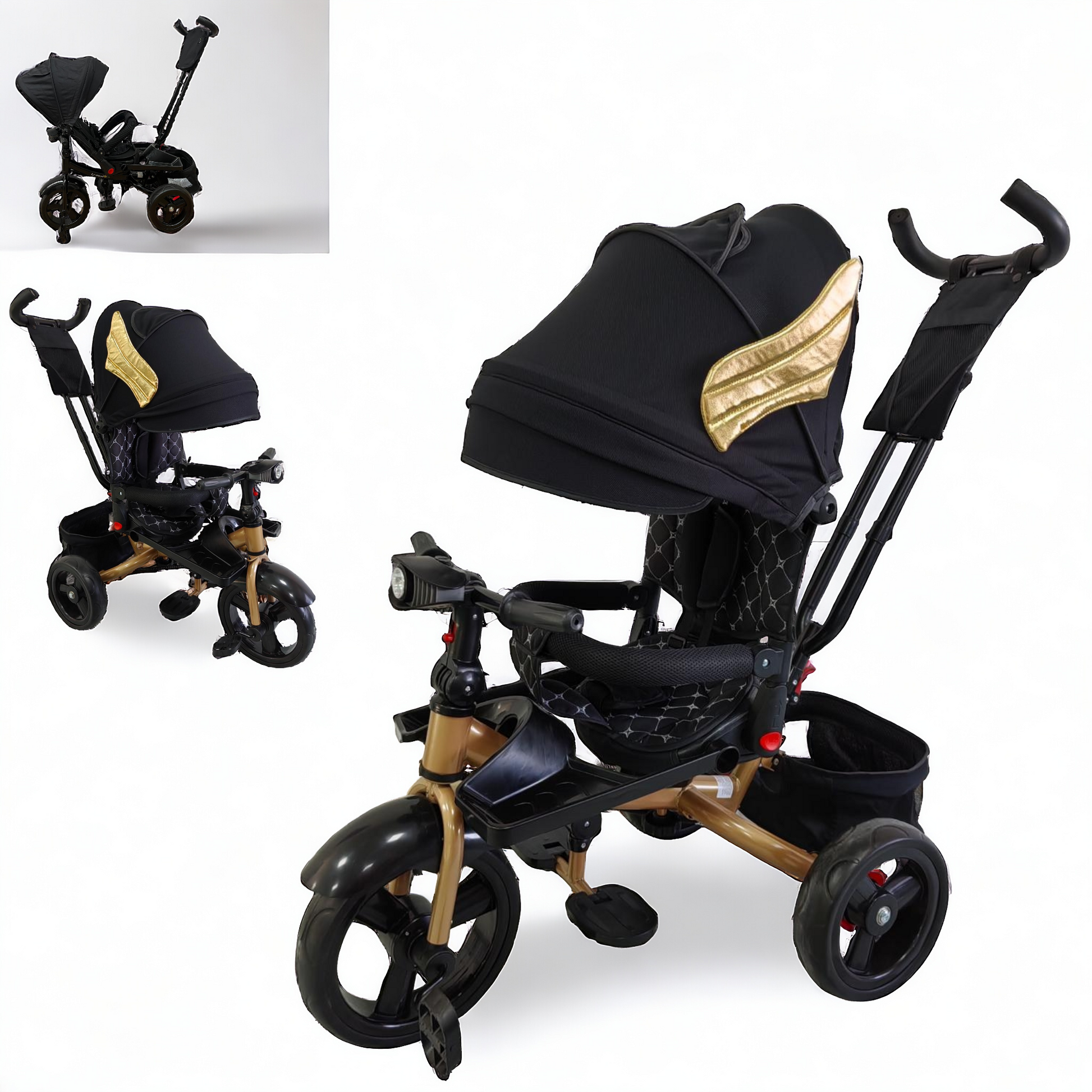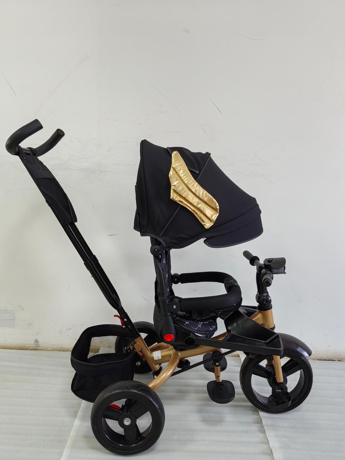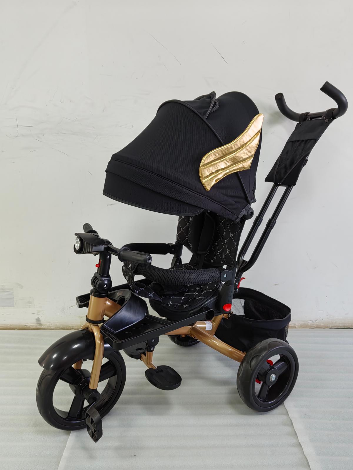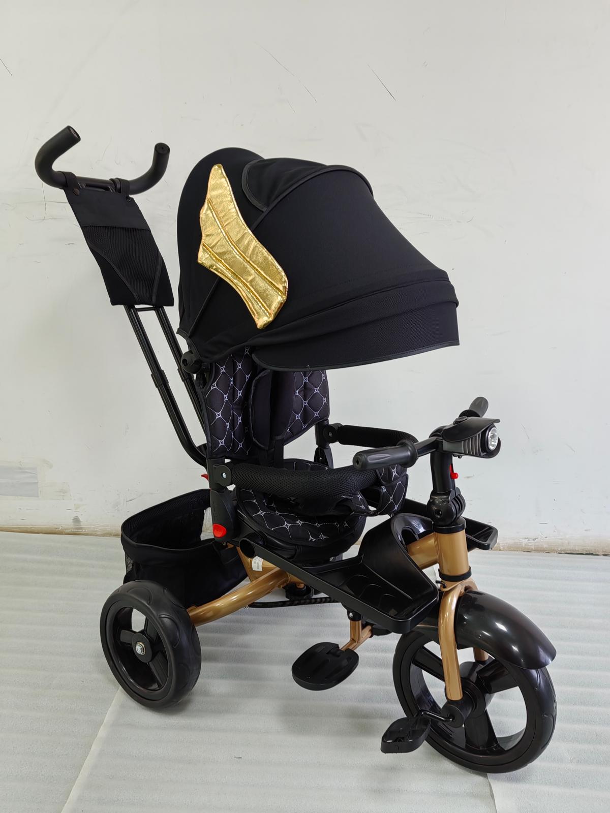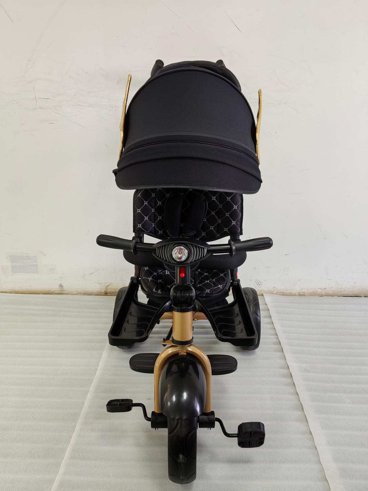 Tricicleta cu pozitie de somn, scaun rotativ si muzica distractiva, Negru