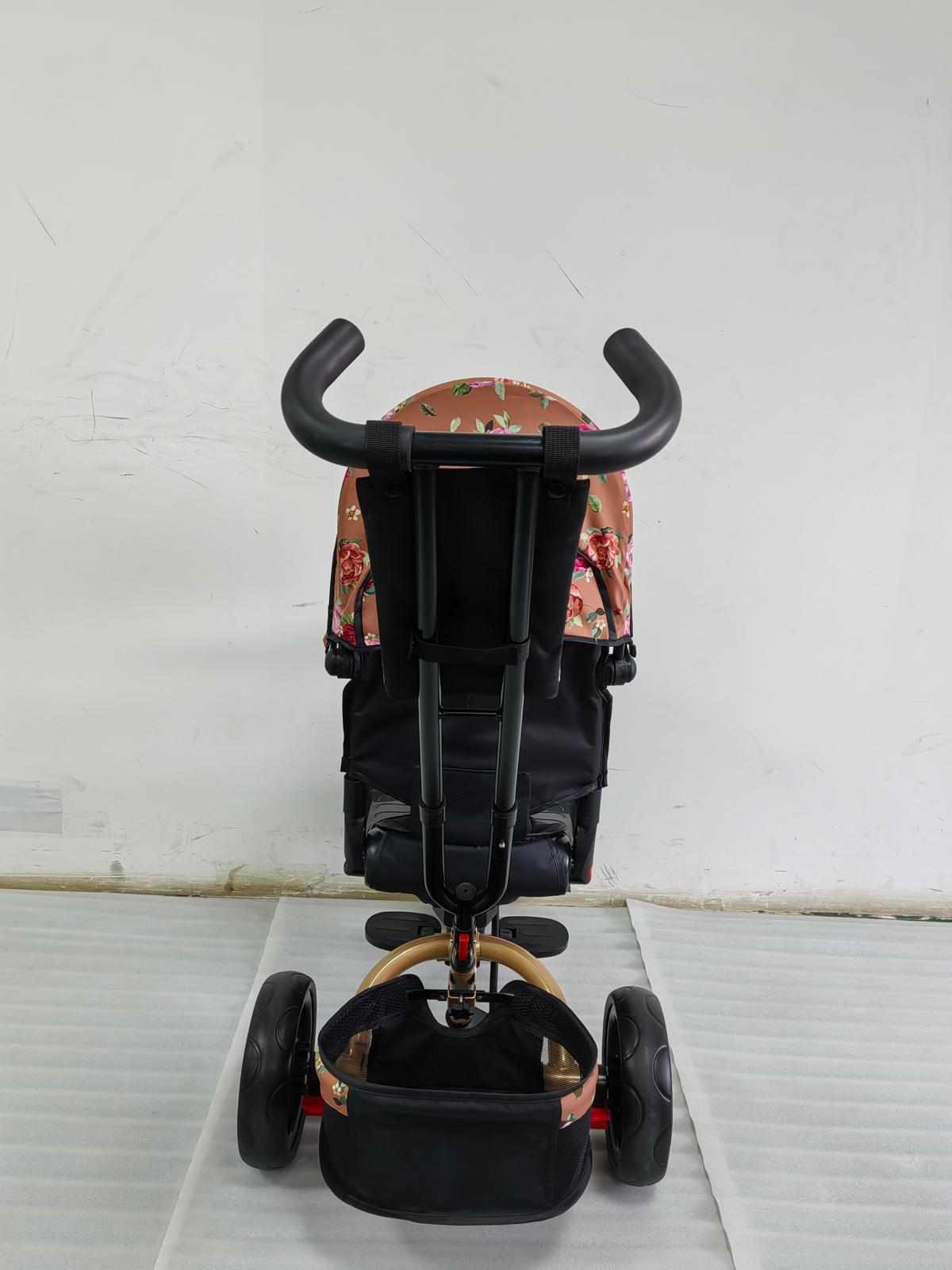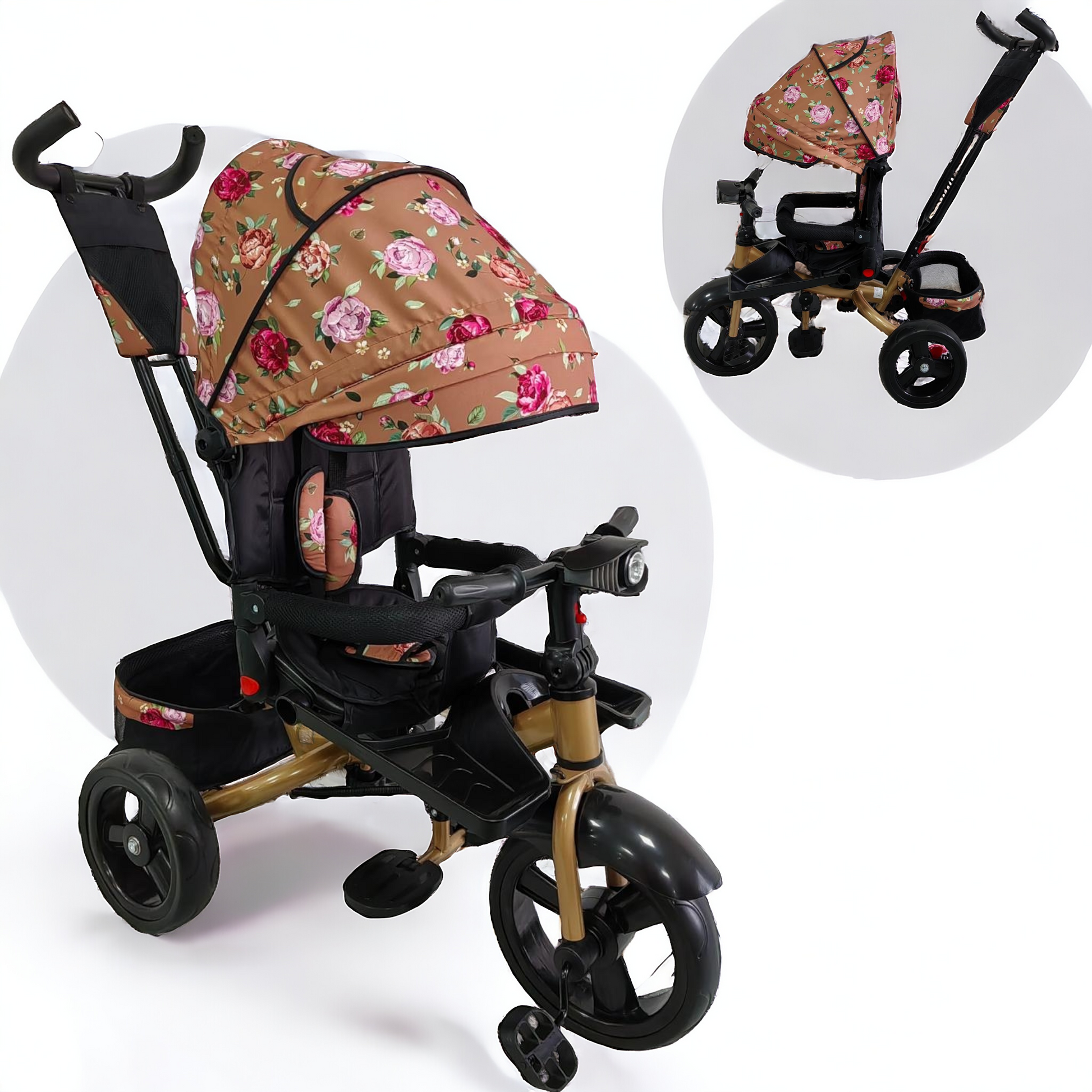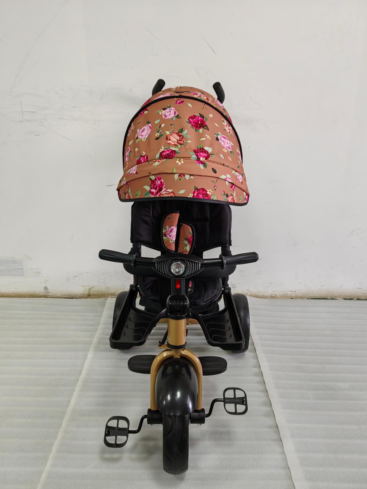 Tricicleta cu pozitie de somn, scaun rotativ si muzica distractiva, Flori