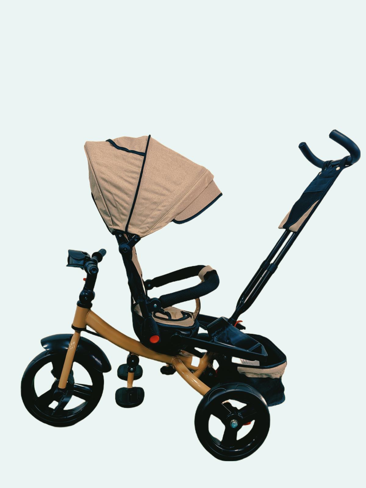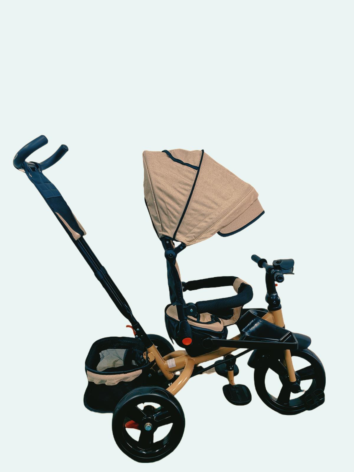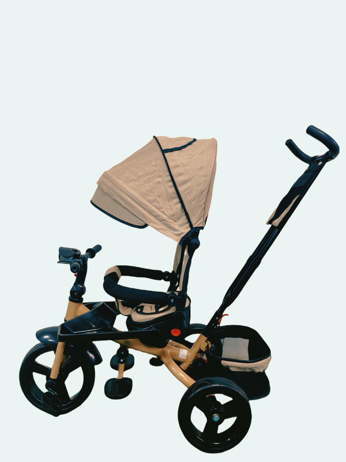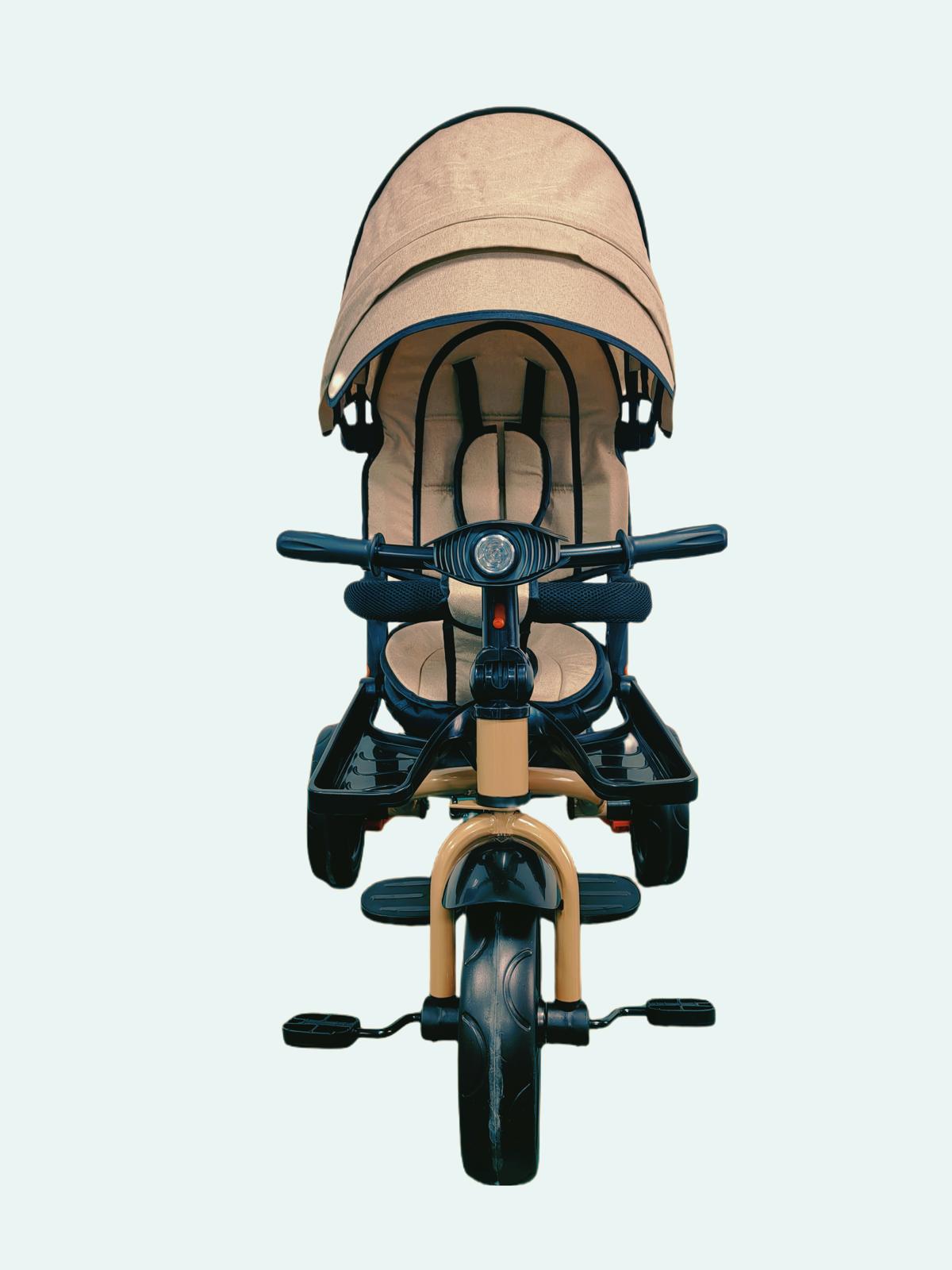Tricicleta cu pozitie de somn, scaun rotativ si muzica distractiva, Bej, Cadrul auriu