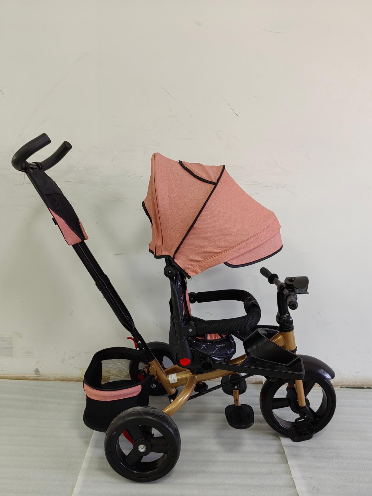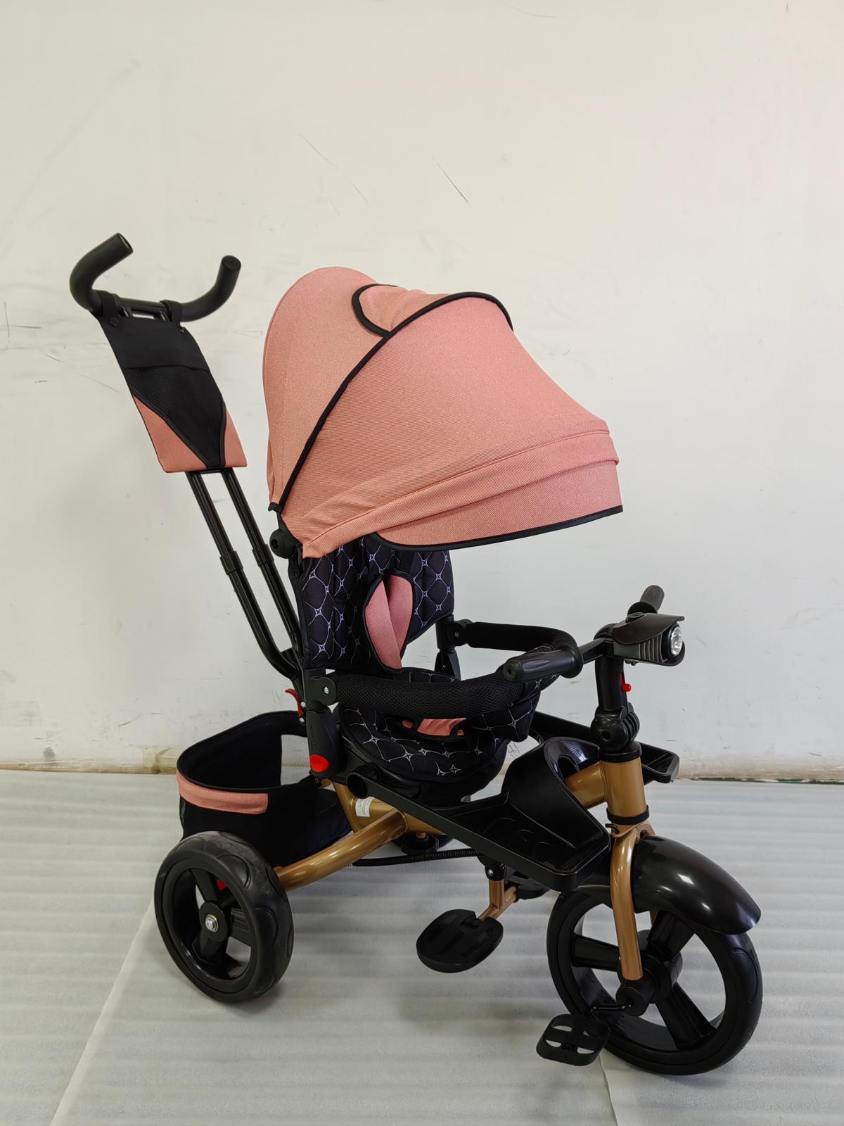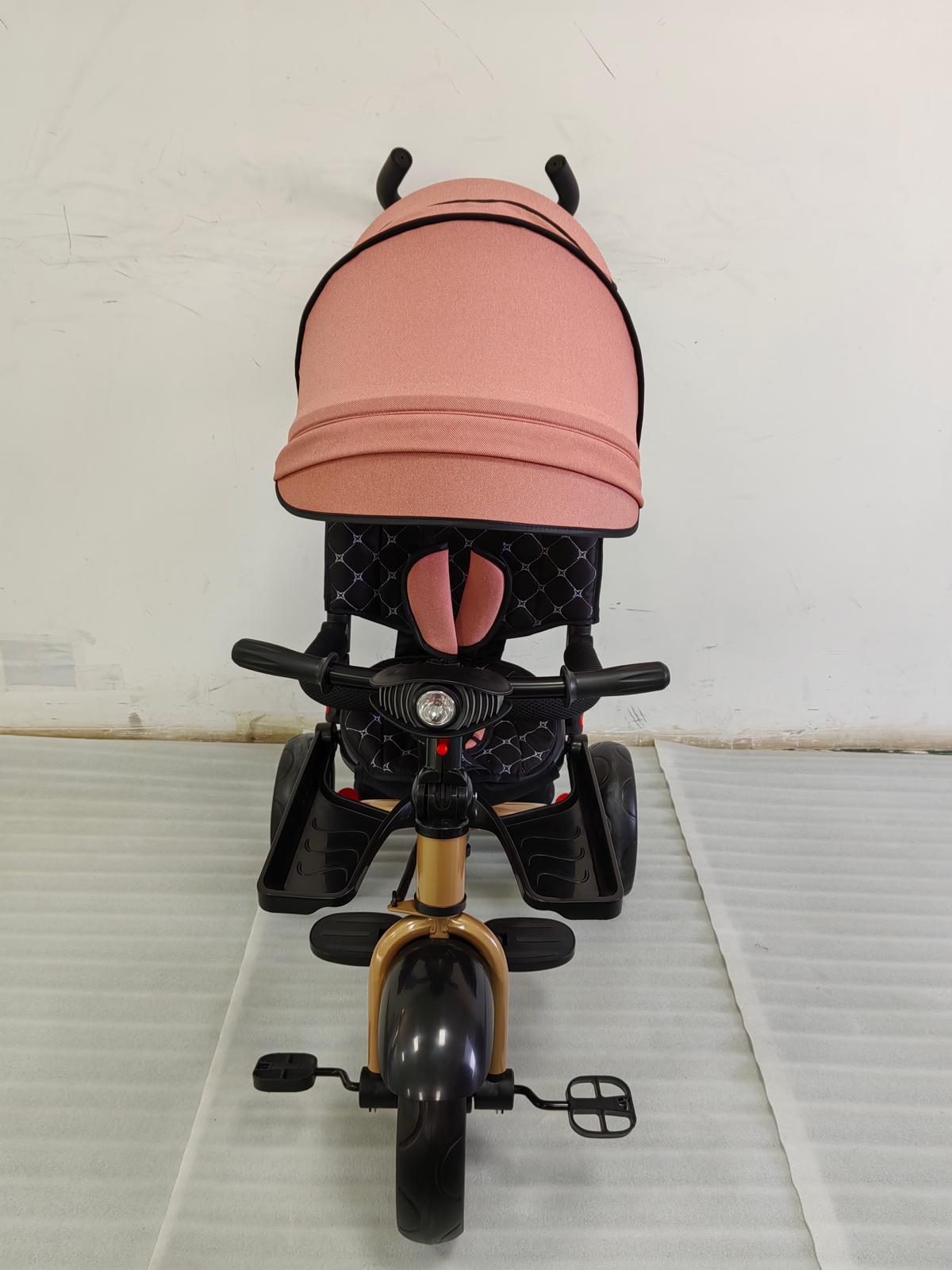 Tricicleta cu pozitie de somn, scaun rotativ si muzica distractiva, Roz Somon