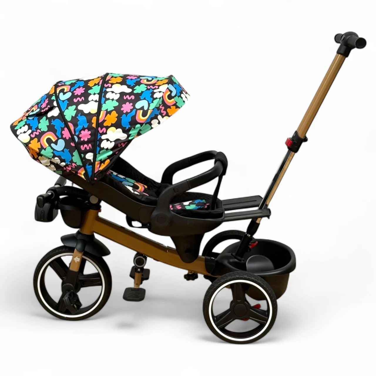 ATENTIE! Tricicleta nu are sistem special de pliere, se mai poate strange prin detasarea scaunelului, parasolar si impingator!