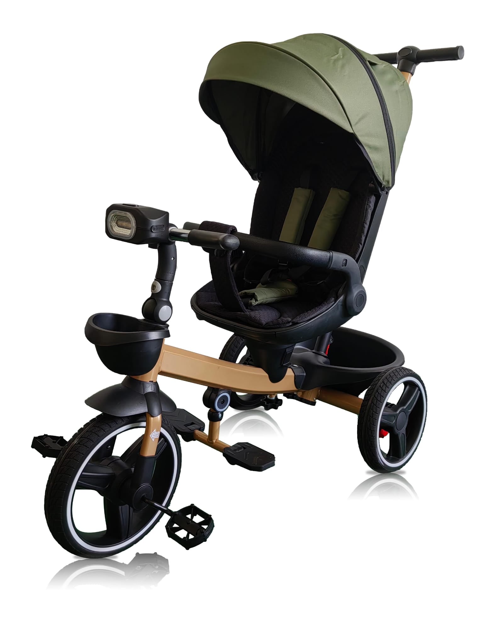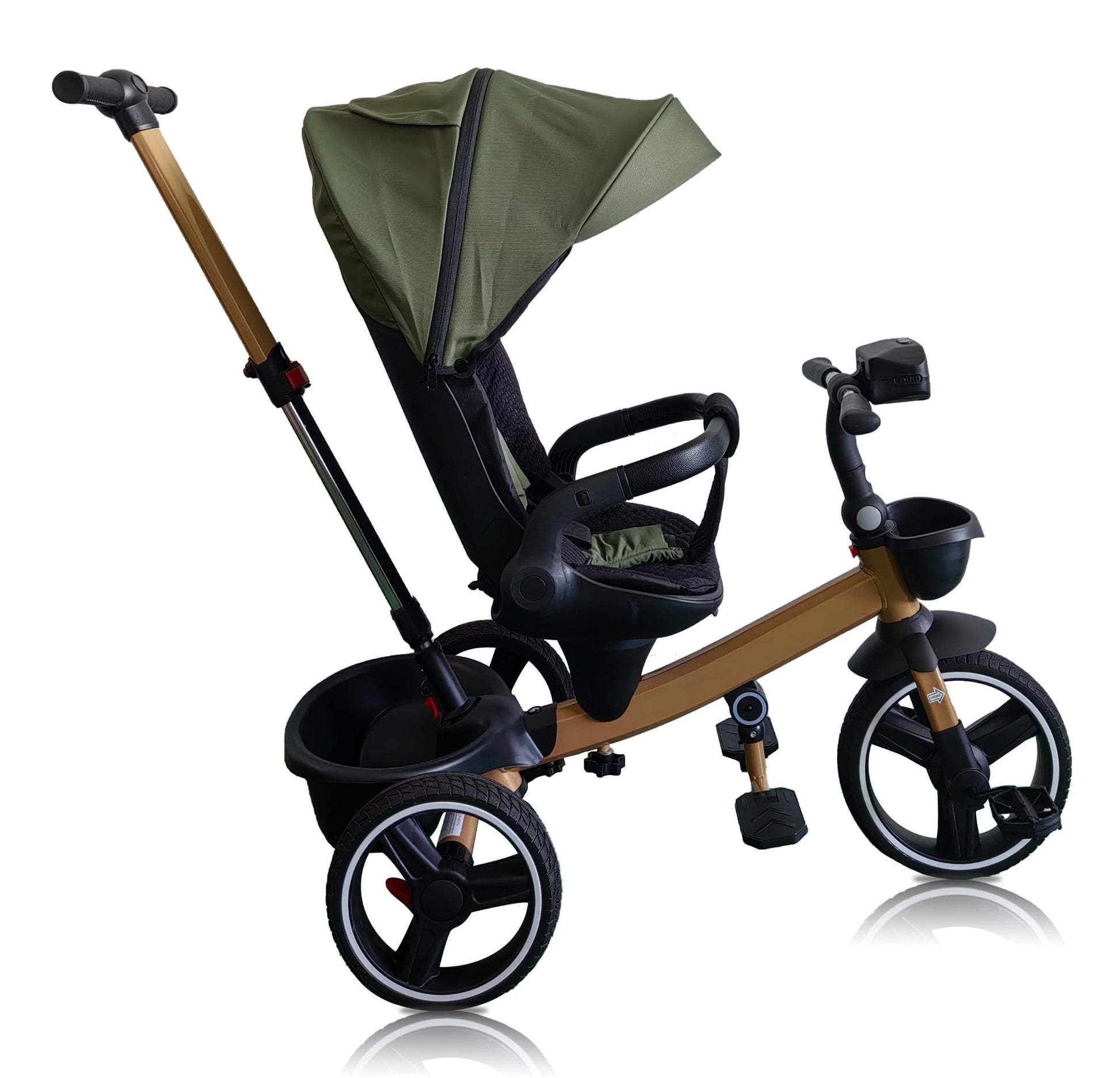 Tricicleta pentru copii, muzicala,cu pozitie de somn si scaunel reversibil, VERDE ARMI