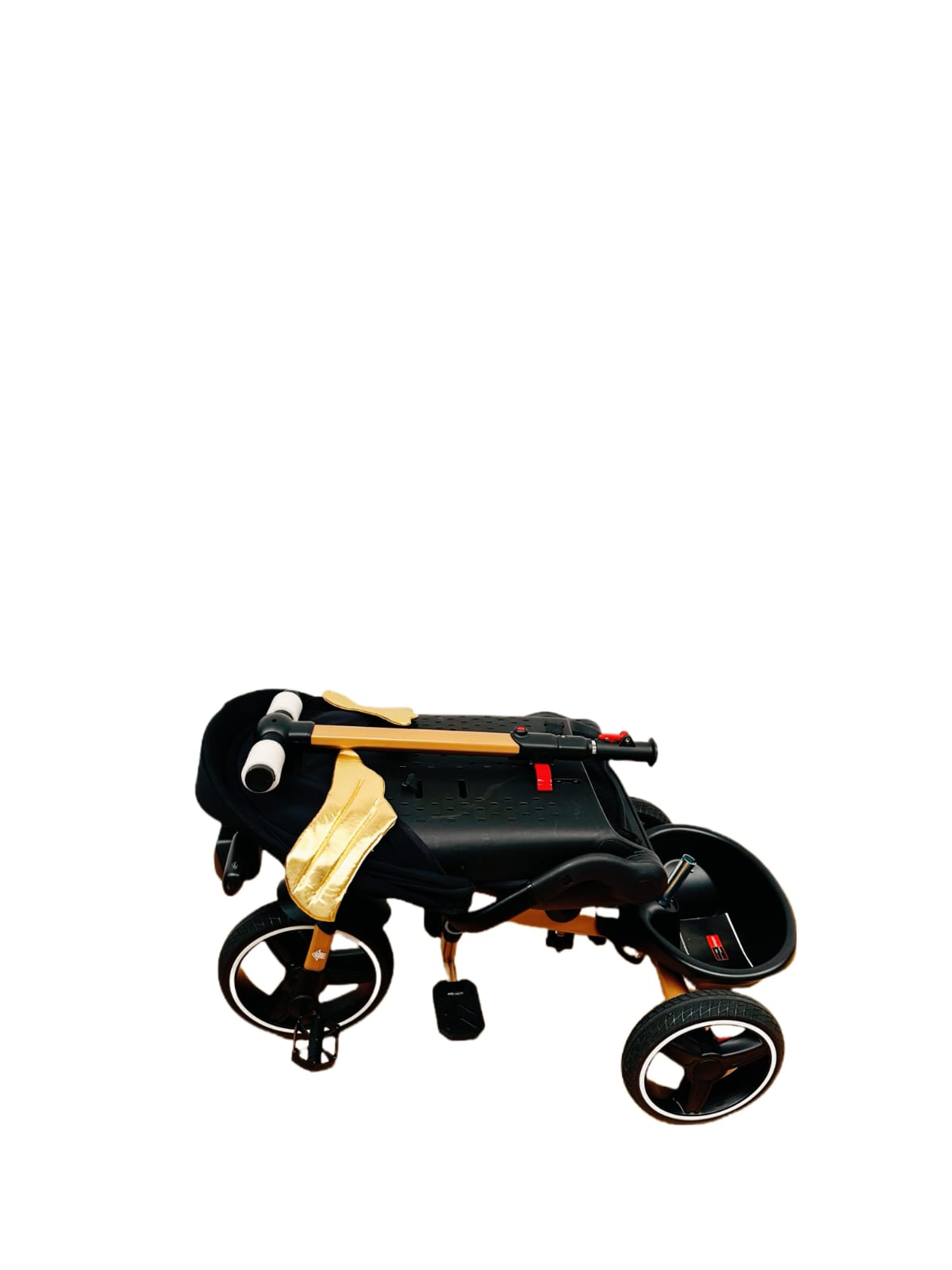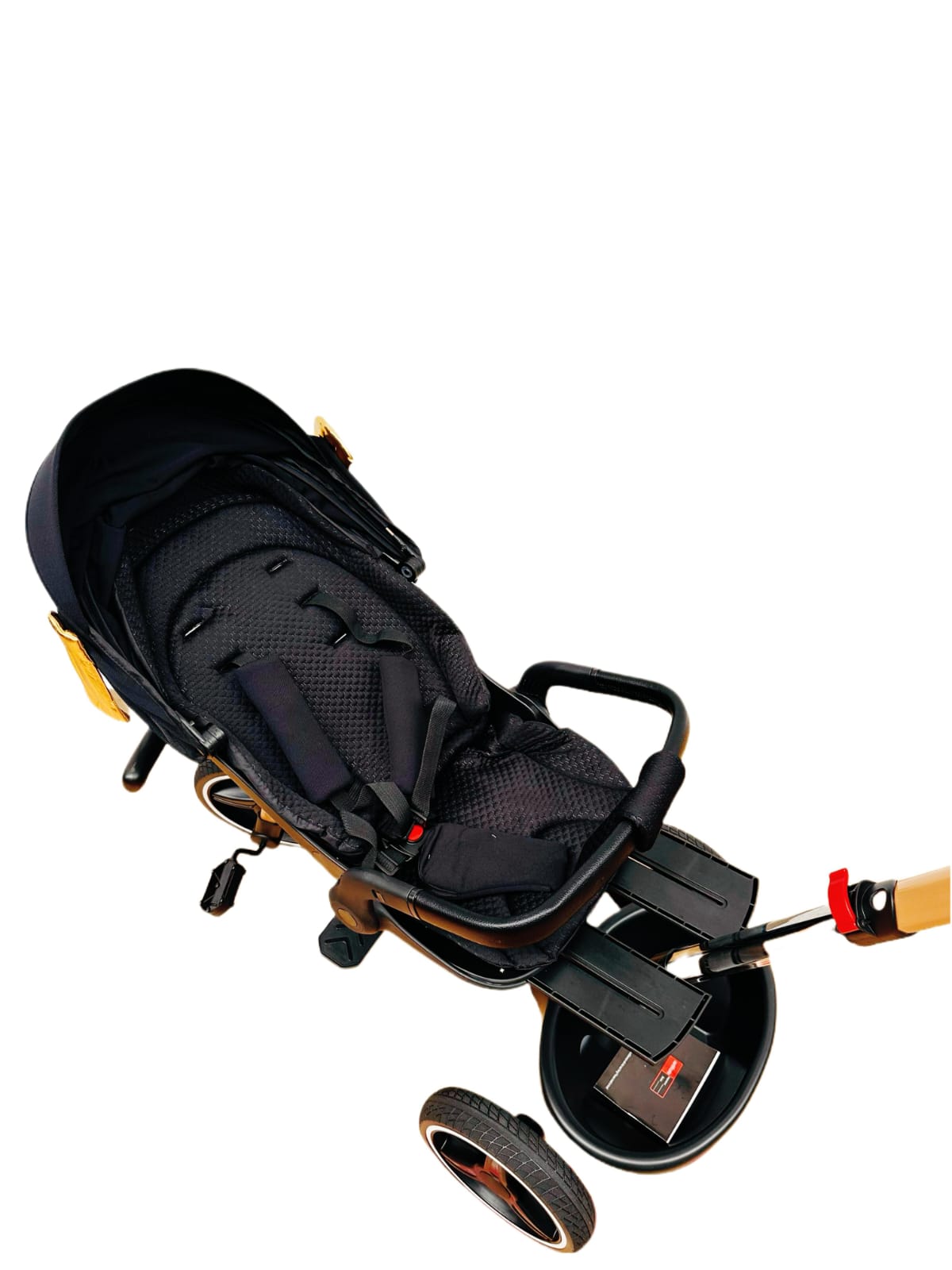 ATENTIE! Tricicleta nu are sistem special de pliere, se mai poate strange prin detasarea scaunelului, parasolar si impingator!