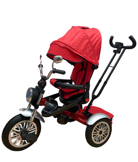Tricicleta L-Sun SL03, cu pozitie de somn, scaun rotativ si muzica distractiva,roti cauciuc, culoare ROSU